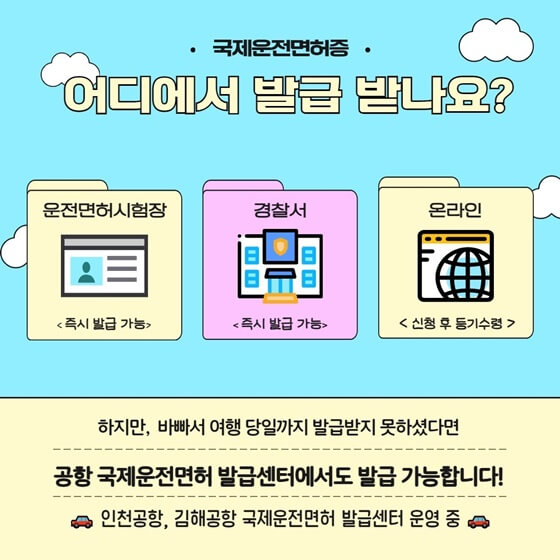 출국 당일 인천공항과 김해공항에서 국제운전면허증이 당일 발급이 가능합니다.